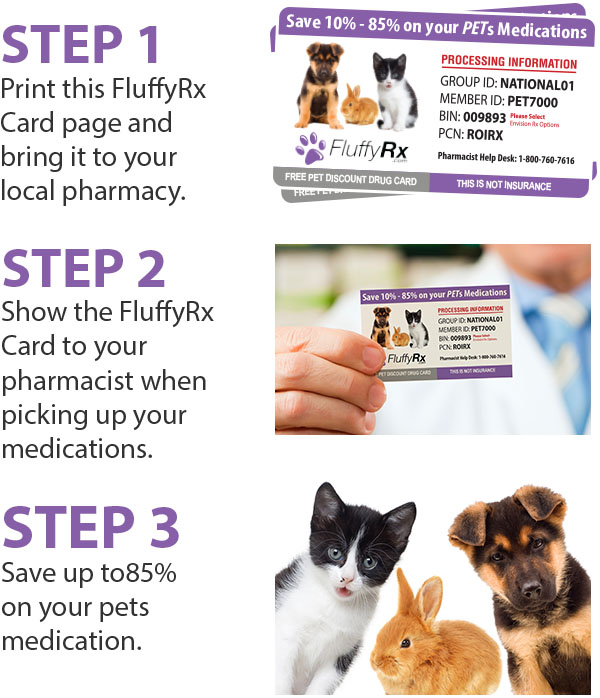 Please Note: Not every pharmacy is equipped to provide every animal medicine. Please check with your pharmacy to see if they can provide the medications you require for your animals. Pet drug card can also be use with live stock animals and other pets.